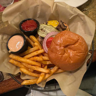 Hungry after our drive, we headed to Golden Valley Brewery and Pub. They offer a diverse menu with everything made from scratch using fresh, local ingredients. We started with a Bavarian Pretzel, Sausage Cheese Plate, and Gorgonzola Steak Bites—each one better than the last. For the main course, Shelly enjoyed the GVB Burger with Tillamook cheddar and grilled mushrooms, while I devoured the Tomkatsu Pork Sandwich. Both dishes were flavorful and satisfying.